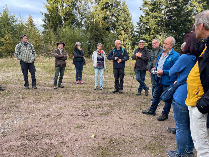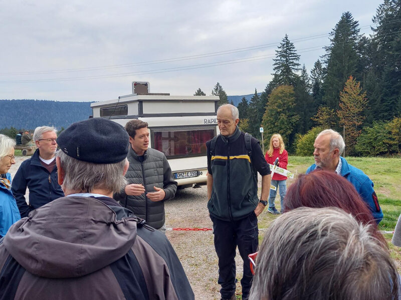Auch Landtagskandidat Dr. Daniel Belling begleitete die Gruppe und war ein sehr gefragter Gesprächspartner. Er betonte zum Auftakt der Wanderung den zentralen Stellenwert der Windkraft für das Gelingen der Energiewende: „Allein in Baden-Württemberg stehen heute bereits rund 830 Windräder, weitere 1.200 sind aktuell in Planung. Entscheidend ist aber der Takt: Die Landesregierung hat die Genehmigungsverfahren, die früher bis zu sieben Jahre dauerten, auf teils unter ein halbes Jahr verkürzt. So kommen Projekte jetzt sichtbar schneller in Umsetzung.“