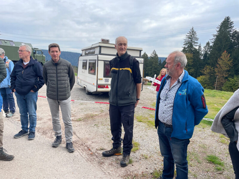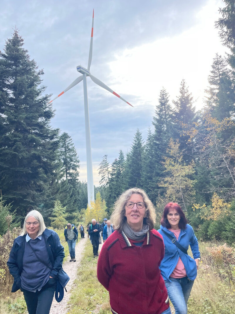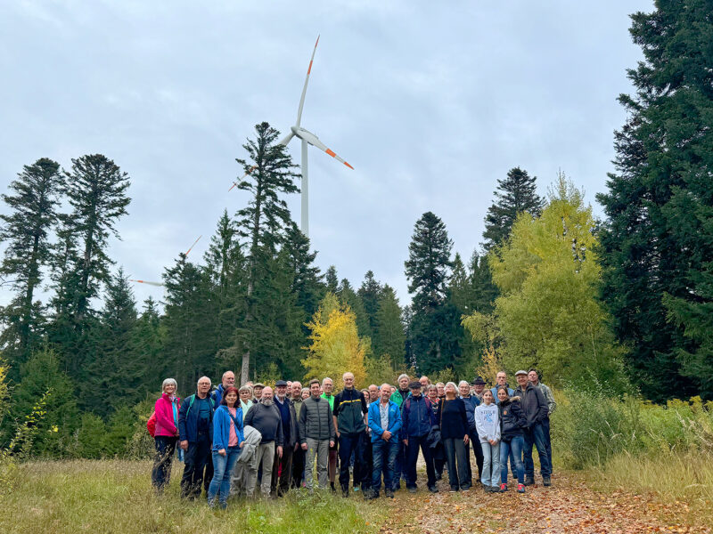 Das Thema Windkraft nimmt Fahrt auf im Landkreis Freudenstadt. In vielen kommunalen Gremien werden derzeit die Pläne des Regionalverbands Nordschwarzwald zum Ausbau der Windkraft diskutiert. Und so traf sich – auf Einladung des Grünen Kreisverbands und der BA/Grüne Freudenstadt – eine etwa 40-köpfige Besuchergruppe mit zwei Hunden auf dem Kupferberg, um die Windkraftanlagen dort zu besichtigen und sich so vor Ort ein eigenes Bild zu machen. Der Kupferberg ist der Hausberg Bad Rippoldsau-Schapbachs, dort stehen insgesamt fünf Windräder, die ein privater Investor im Laufe der letzten zwanzig Jahre errichtet hat.