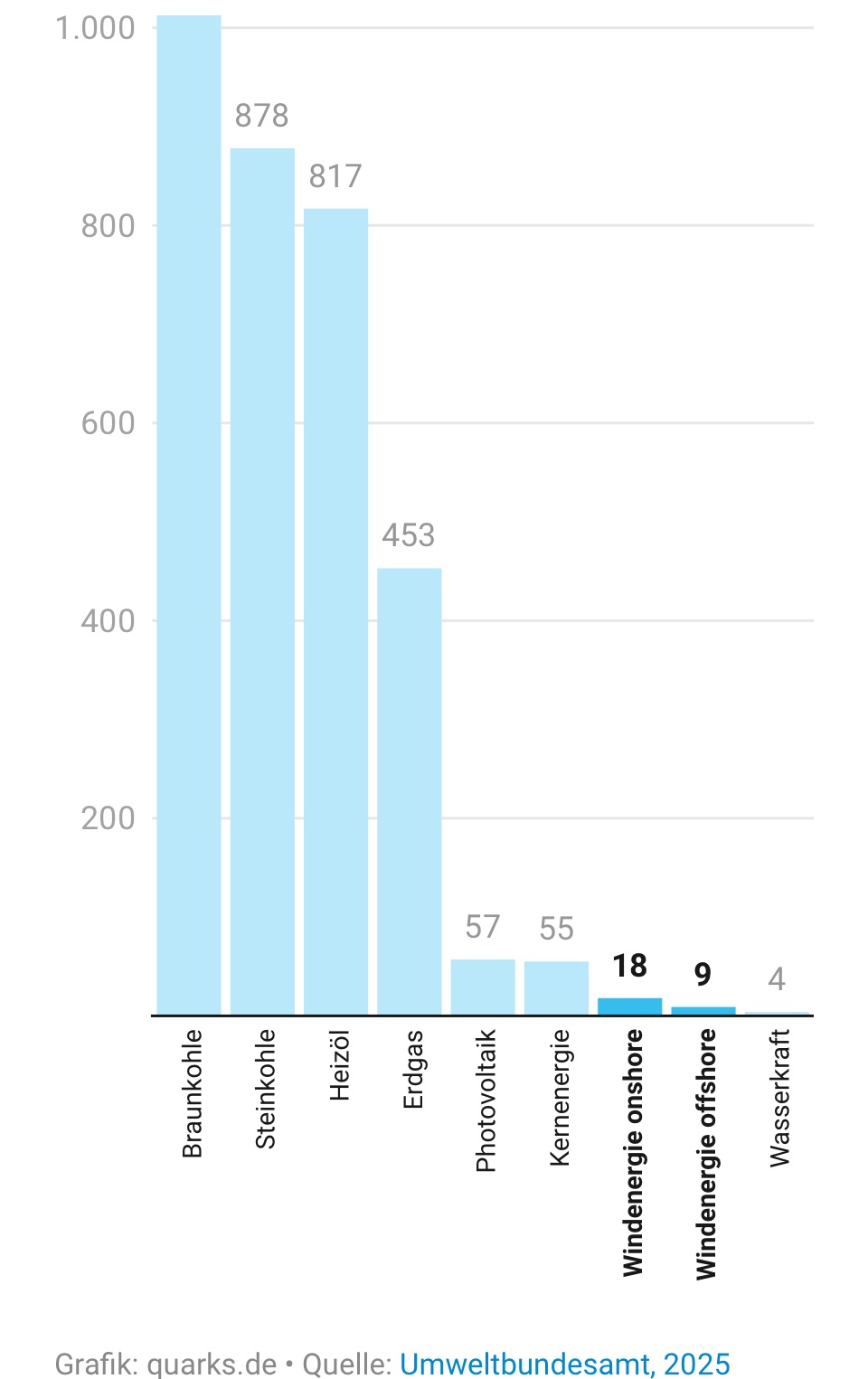 Zur grundsätzlichen Emissionsbilanz von Energieträgern sei hier auf folgende Quelle des Umweltbundesamtes verwiesen, grafisch aufbereitet von Quarks&Co: